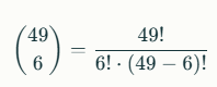es el número de combinaciones posibles de 49 números tomados de 6 en 6 y se calcula con esta fórmula: